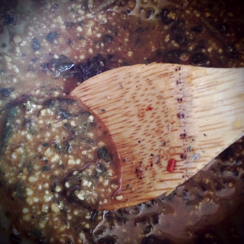 You can see in the picture I tried to roast the cashews with the squash this time but I wouldn’t recommend it. A real quick toss in a pan with sugar & spices (cumin & cayenne – maybe a bit of nutmeg) will liven them up, or toss them in raw, but the marinade in the oven made them too soft for my liking.